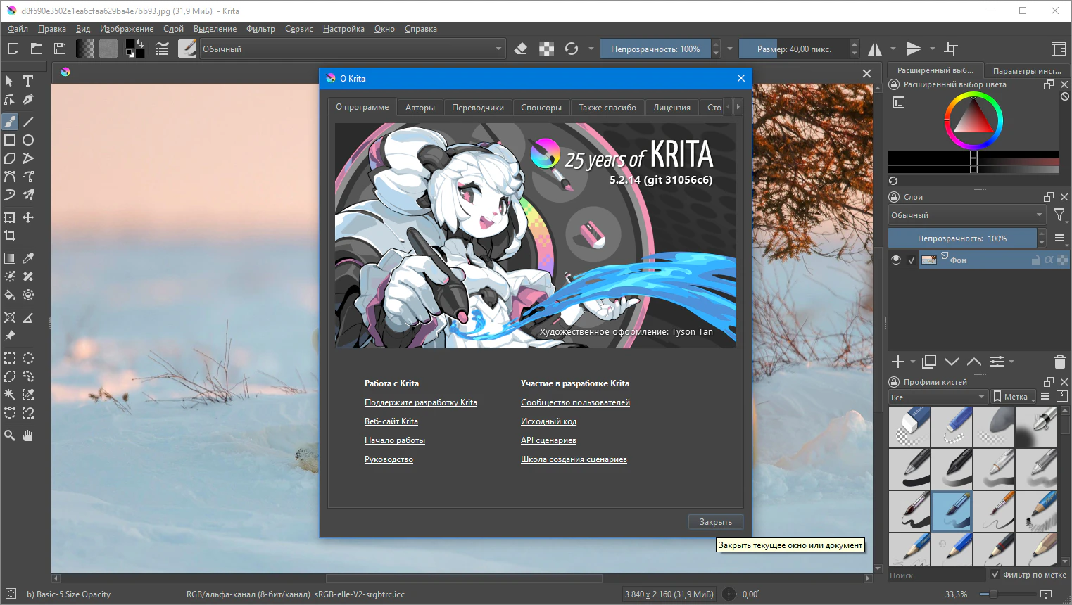Krita – профессиональный бесплатный растровый графический редактор как для любителей, так и для профессиональных художников и иллюстраторов, использующих графические планшеты в процессе создания цифровой живописи как в домашних условиях, так и в игровых студиях, в VFX мастерских и дизайн-студиях.