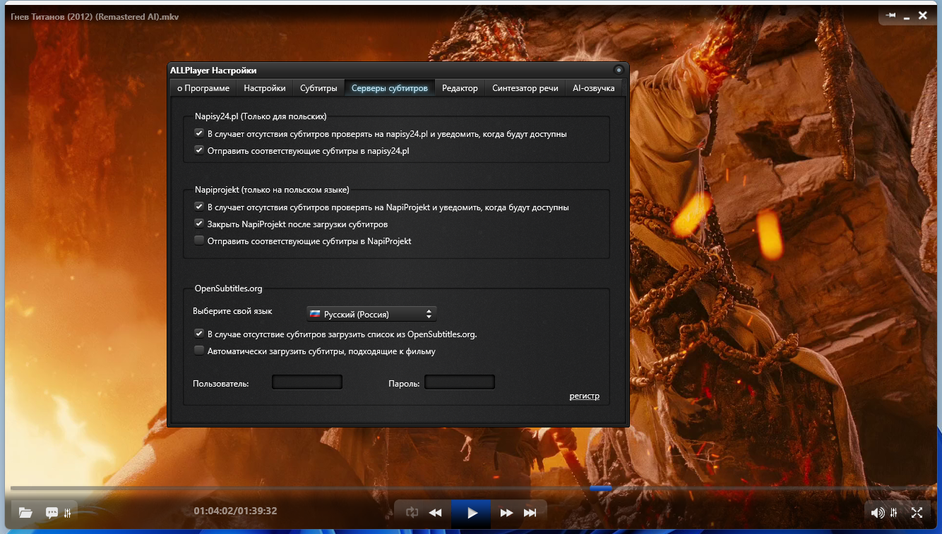 В последней версии реализована поддержка всех популярных форматов субтитров. Движок также улучшает их отображение, включая настройку времени отображения.