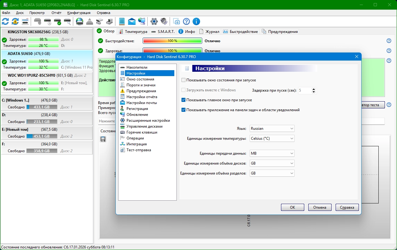 Мониторинг состояния HDD/SSD Hard Disk Sentinel PRO 6.30.7 Build 13782 Beta by elchupacabra