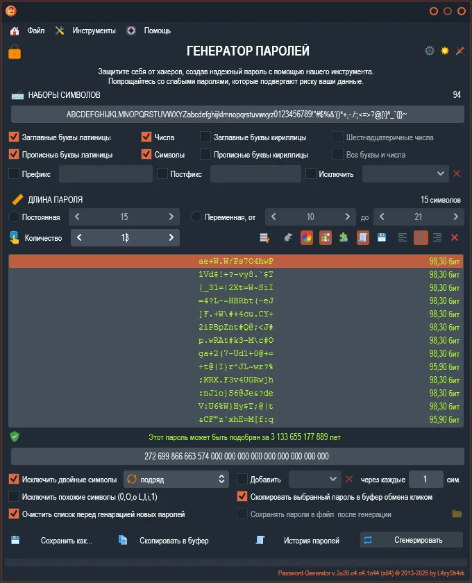 Генератор безопасных паролей Password Generator 2026.04.04.1044