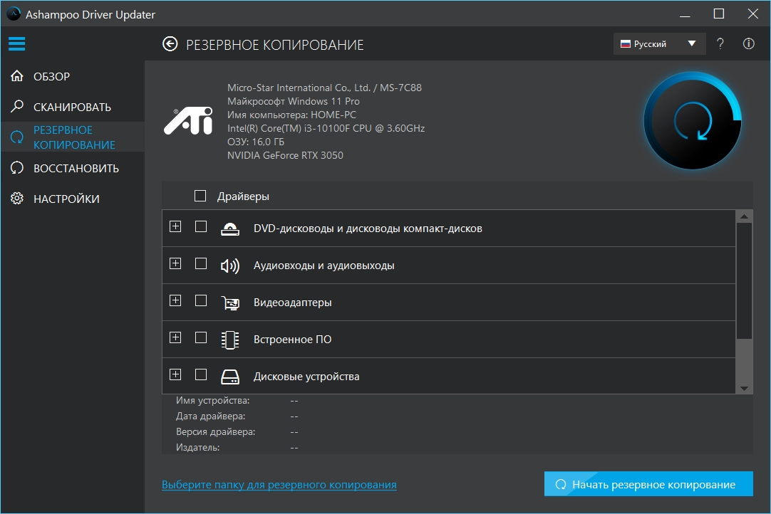 Вы не будете рисковать с Ashampoo Driver Updater. Её встроенная функция резервного копирования позволяет Вам при необходимости сохранять и восстанавливать любой драйвер. Оставляйте только те, что действительно полезны Вам!