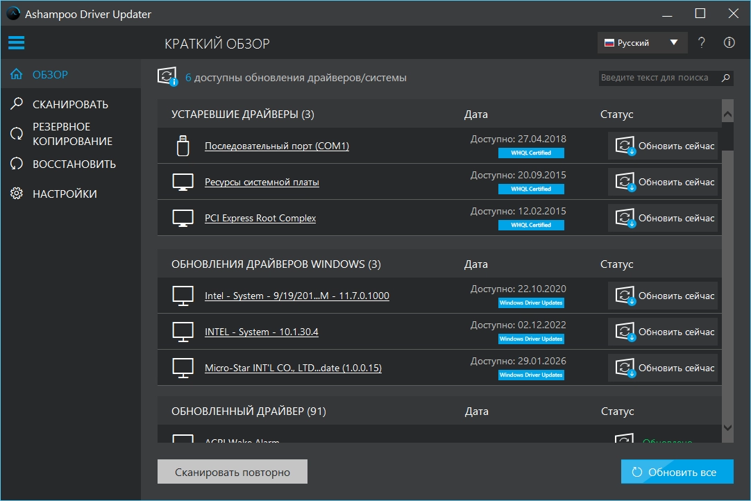 • Идеальный выбор для Windows 10 - найдёт все драйверы