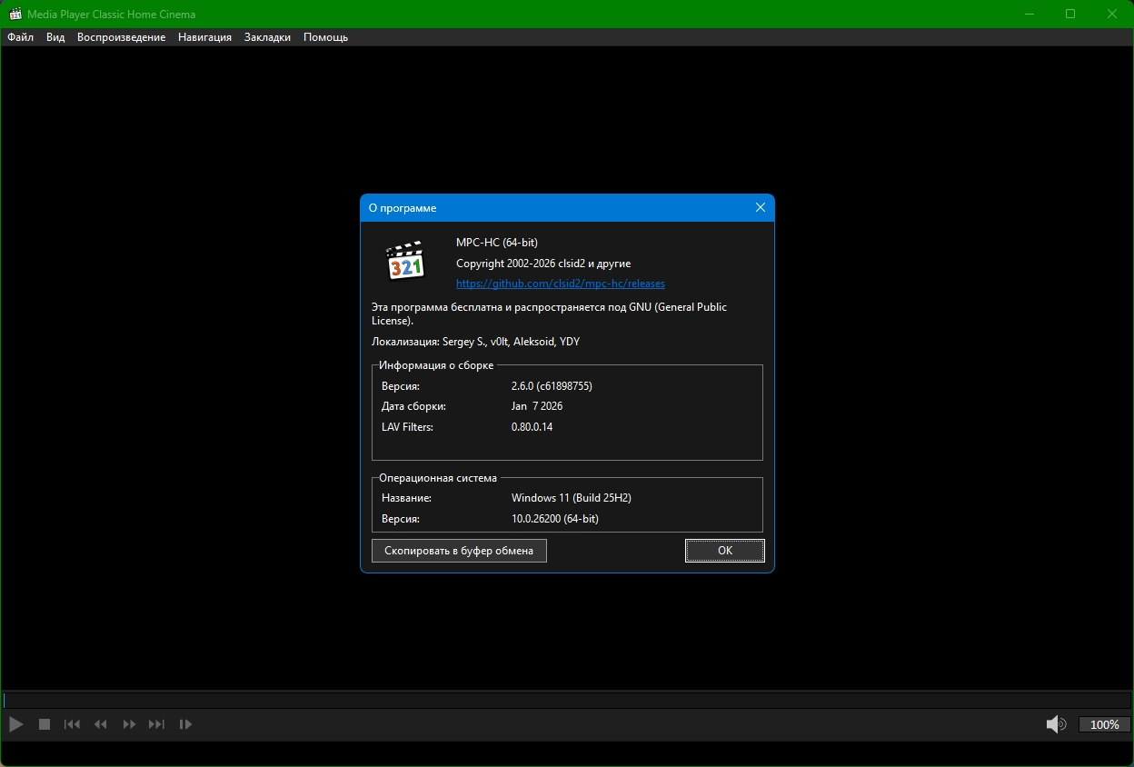 Скачать Media Player Classic Home Cinema 2.6.0.0 by KpoJIuK через торрент: