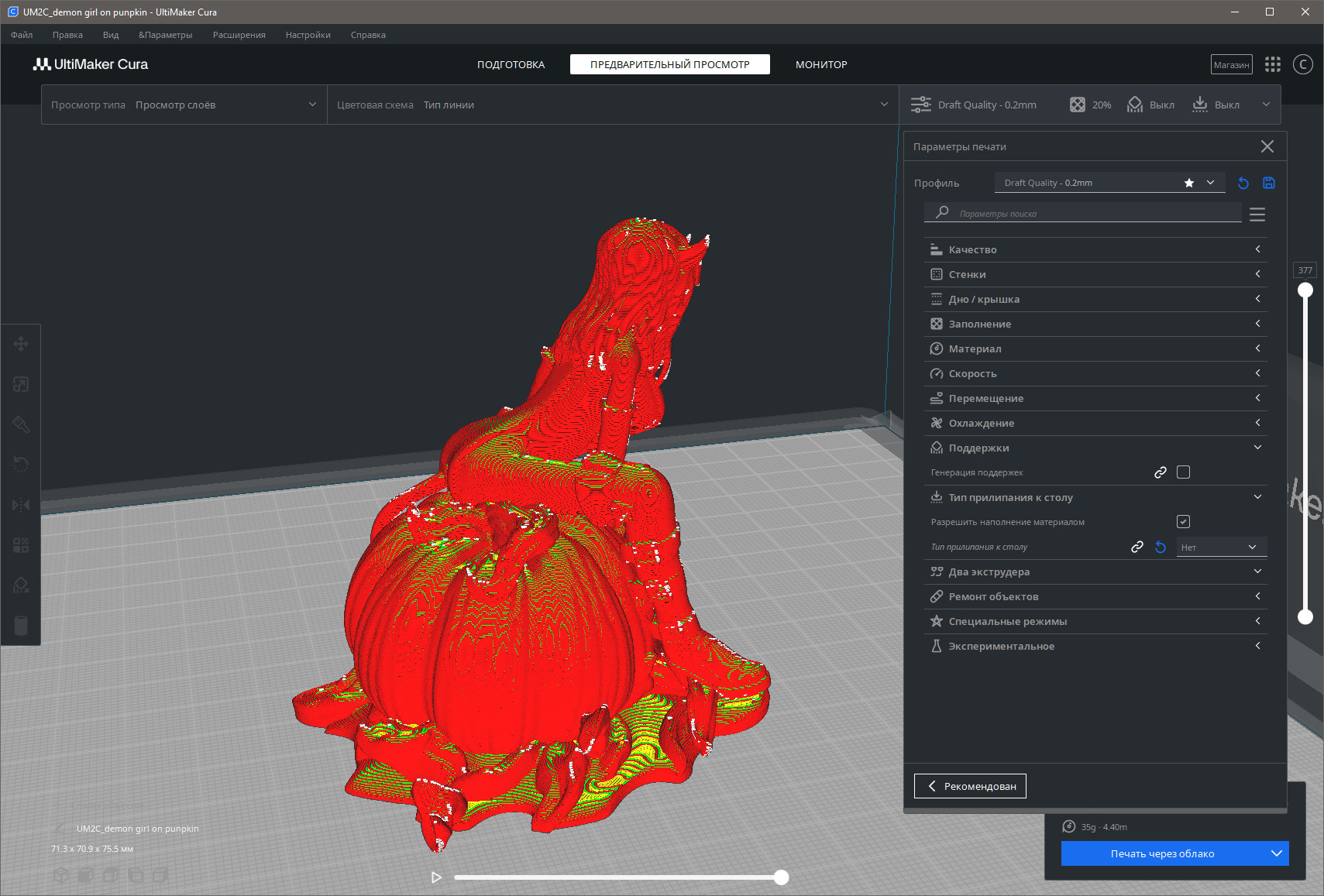 Ultimaker Cura - популярный слайсер для 3d-печати. Отлично подходит как для начинающих домашних пользователей, так и для небольших офисных работ. Имеет готовые шаблоны для печати и дружелюбный интерфейс.