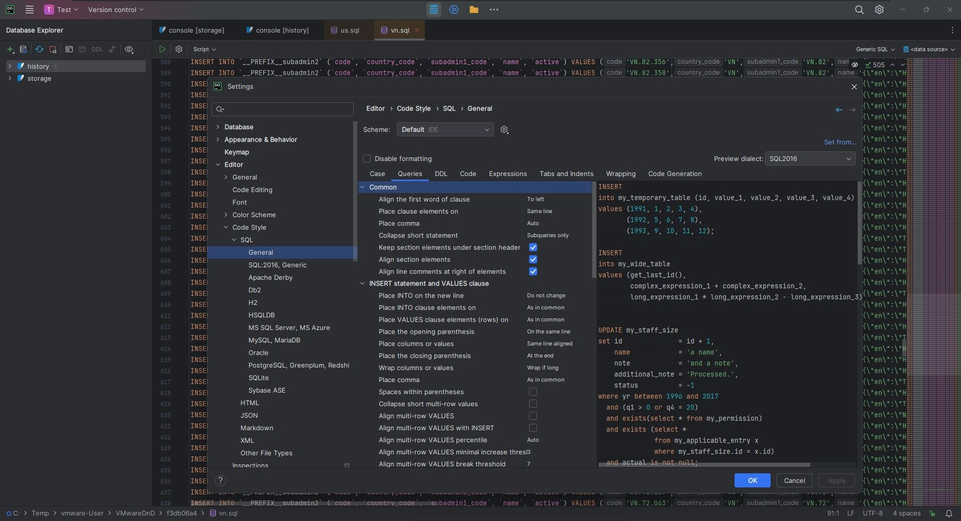 DataGrip поставляется с темными и светлыми темами. Каждый из них может быть полностью настроен, поэтому вы можете создать тот, который подходит вам лучше всего. То же самое работает для более чем десяти предварительно настроенных раскладок клавиш. Выполнение запросов