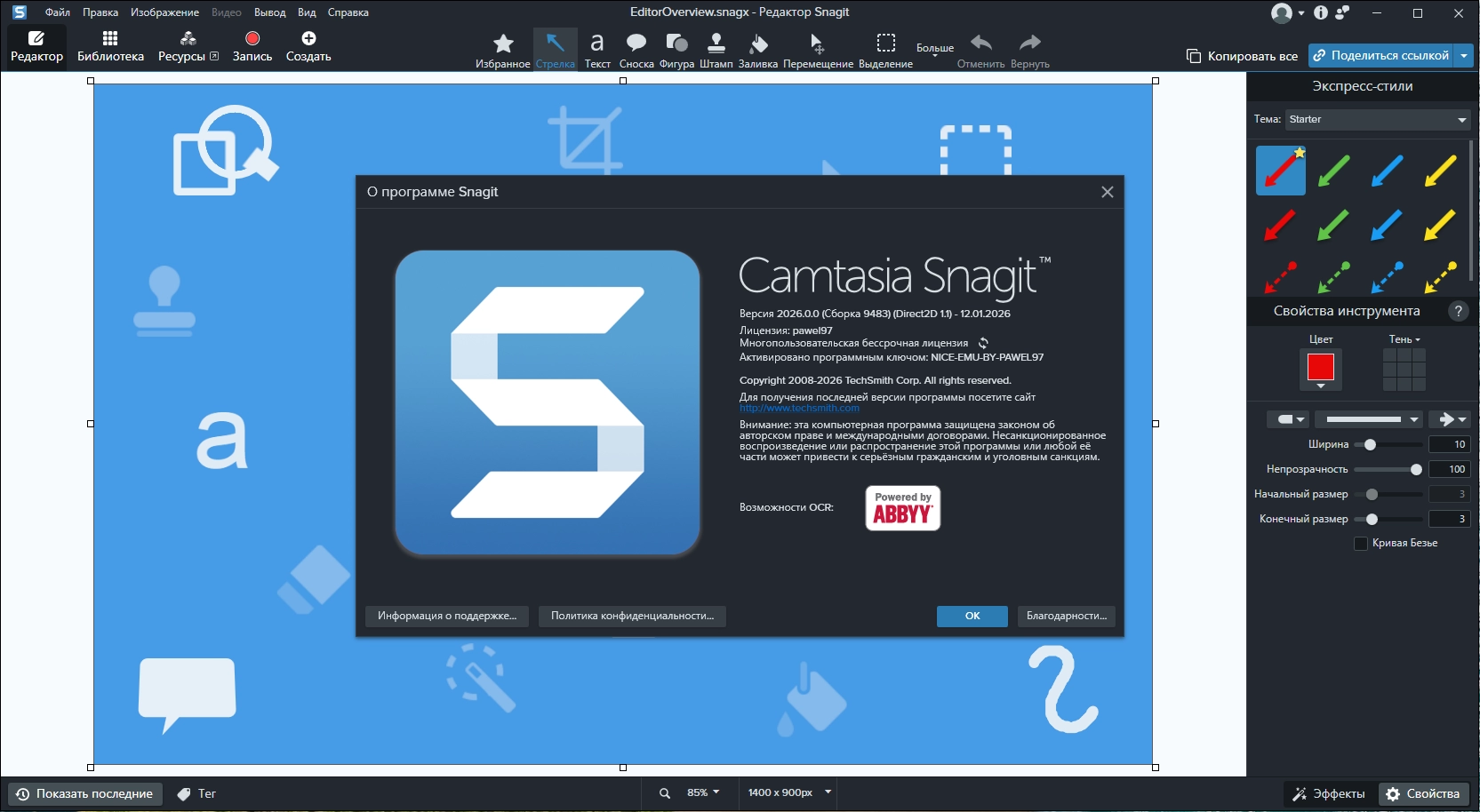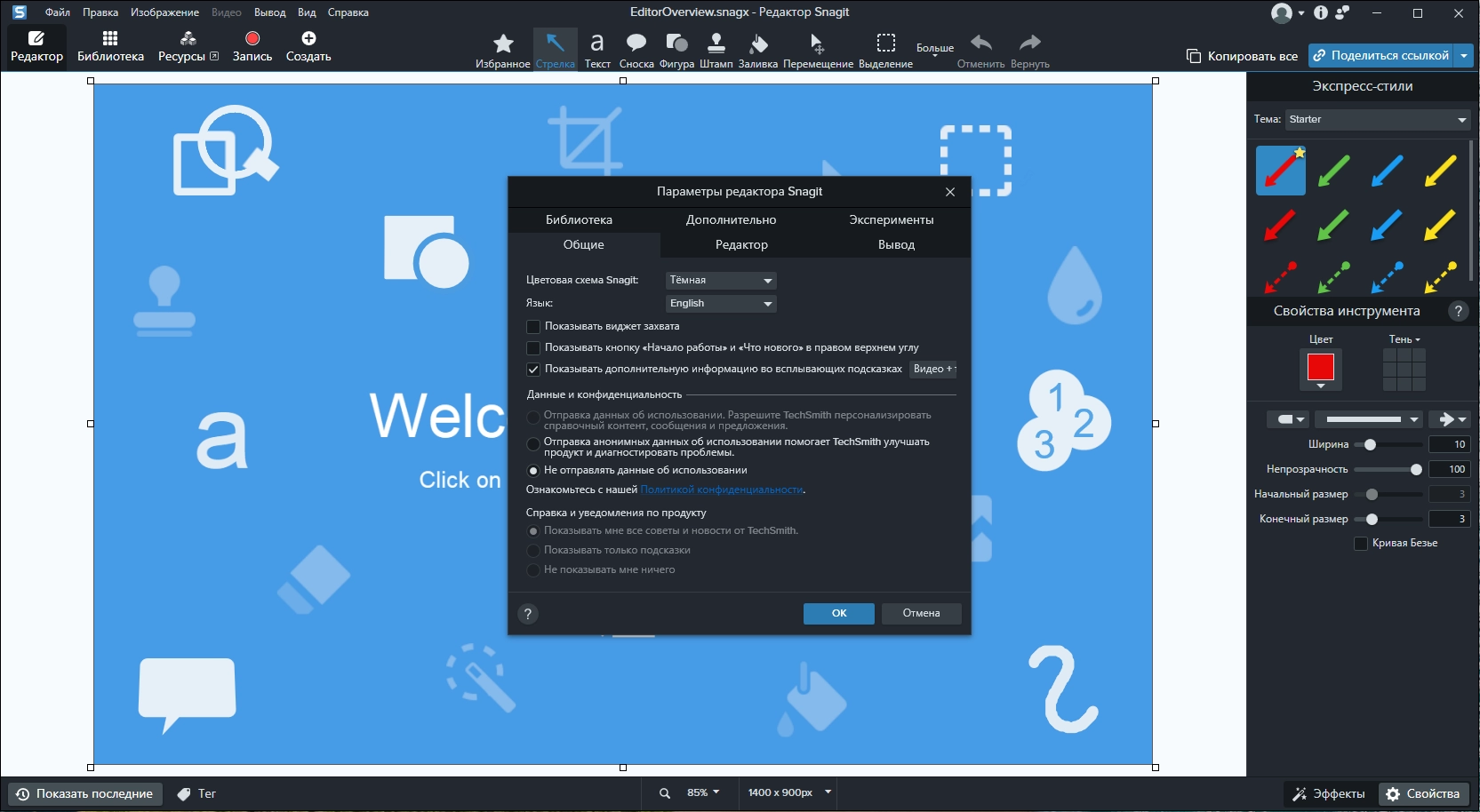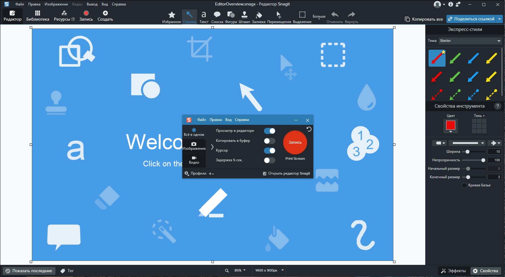 Встроенный векторный редактор Snagit Studio