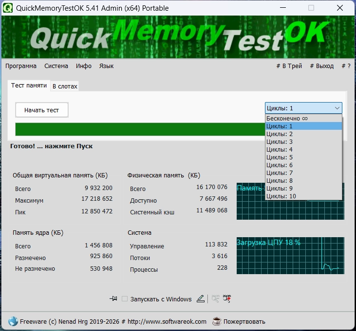 Тест оперативки QuickMemoryTestOK 5.41 + Portable