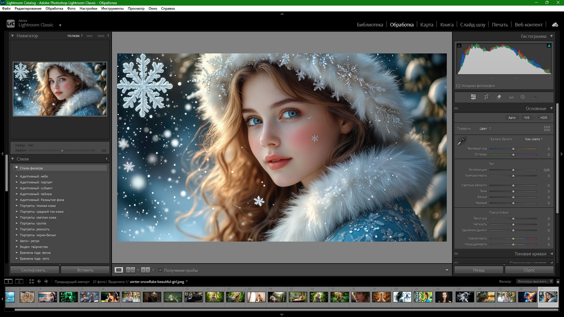 • Коррекция цветовых и тональных параметров изображений (Develop)