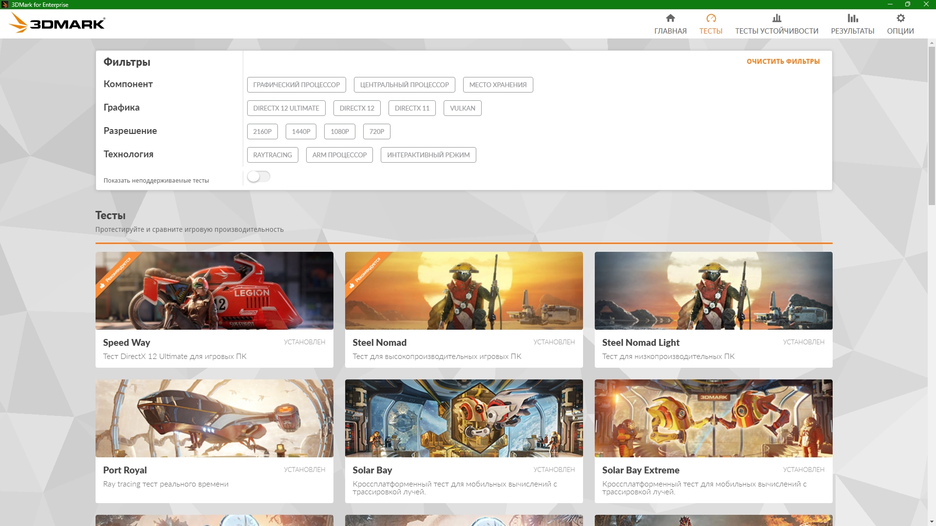 В 3DMark легко найти правильный тест для вашего ПК. 3DMark автоматически сканирует ваше устройство и рекомендует лучший тест для вашей системы.
