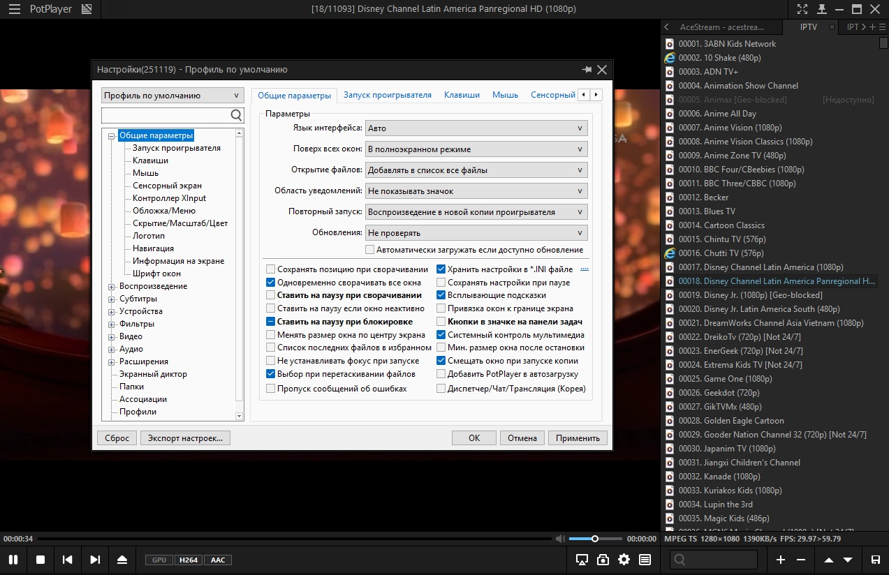 без рекламы и плеера, для просмотра Torrent TV в PotPlayer.