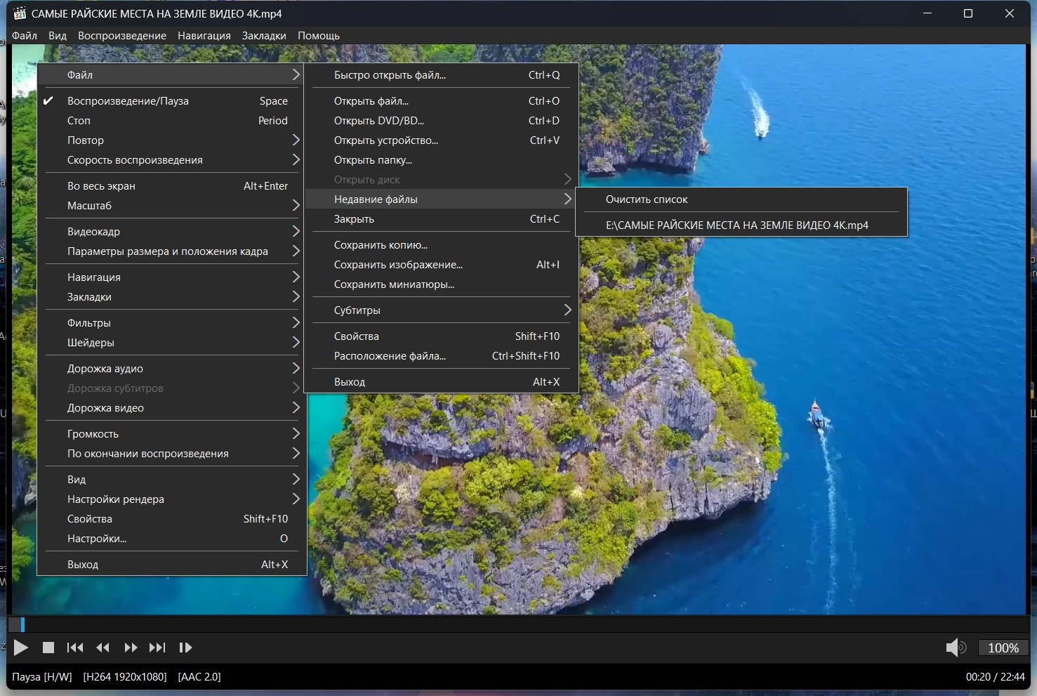 Media Player Classic Home Cinema – удобный во всех планах мультимедийный проигрыватель. Он построен на базе классического плеера Media Player Classic и одного из лучших наборов медиа-кодеков ffdshow, и благодаря этому может проигрывать многие форматы видео и аудио файлов без установки внешних кодеков. Этот плеер имеет большое количество различных функциональных возможностей: он умеет воспроизводить DVD диски, умеет аппаратно декодировать популярный формат H.264 на видеокартах последнего поколения, умеет корректно работать со вторым монитором (телевизором), поддерживает различные виды субтитров, умеет работать с форматами QuickTime и RealVideo и т.д.