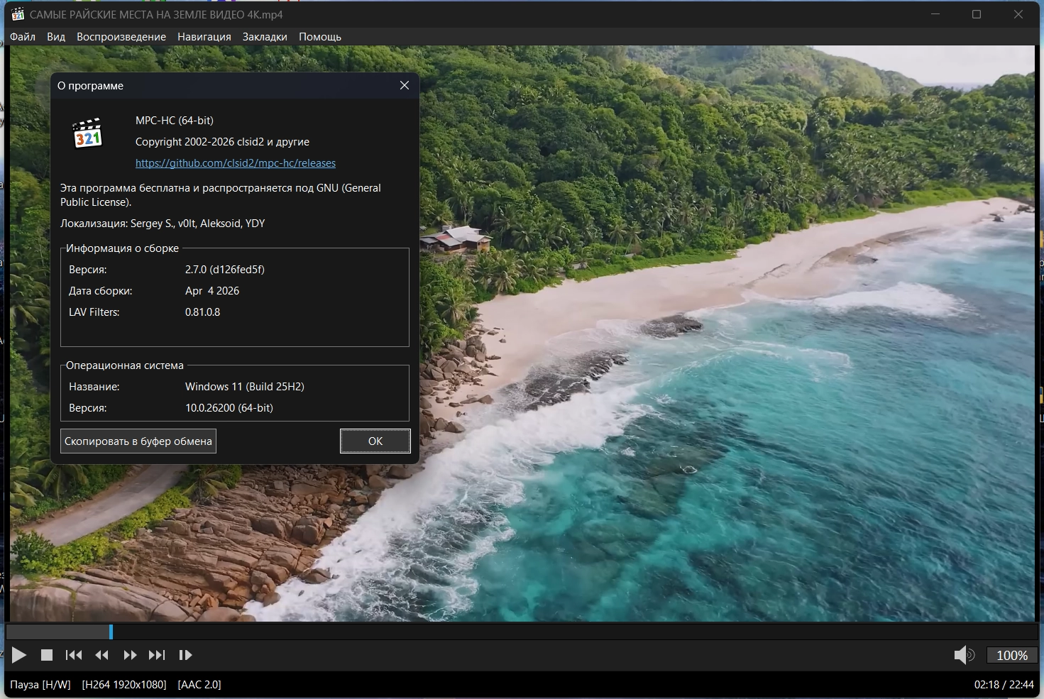 Скачать Media Player Classic Home Cinema 2.7.0.0 by KpoJIuK через торрент: