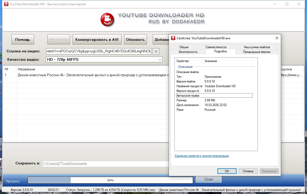 Торрент Youtube Downloader HD 5.9.9.10 by Dodakaedr подробно: