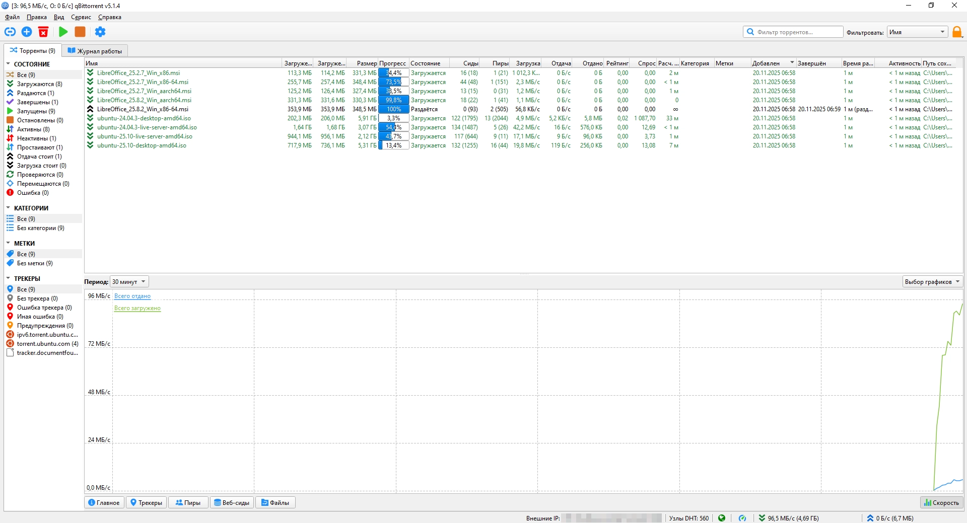 • IP-фильтрация (eMule- и PeerGuardian-совместимая)
