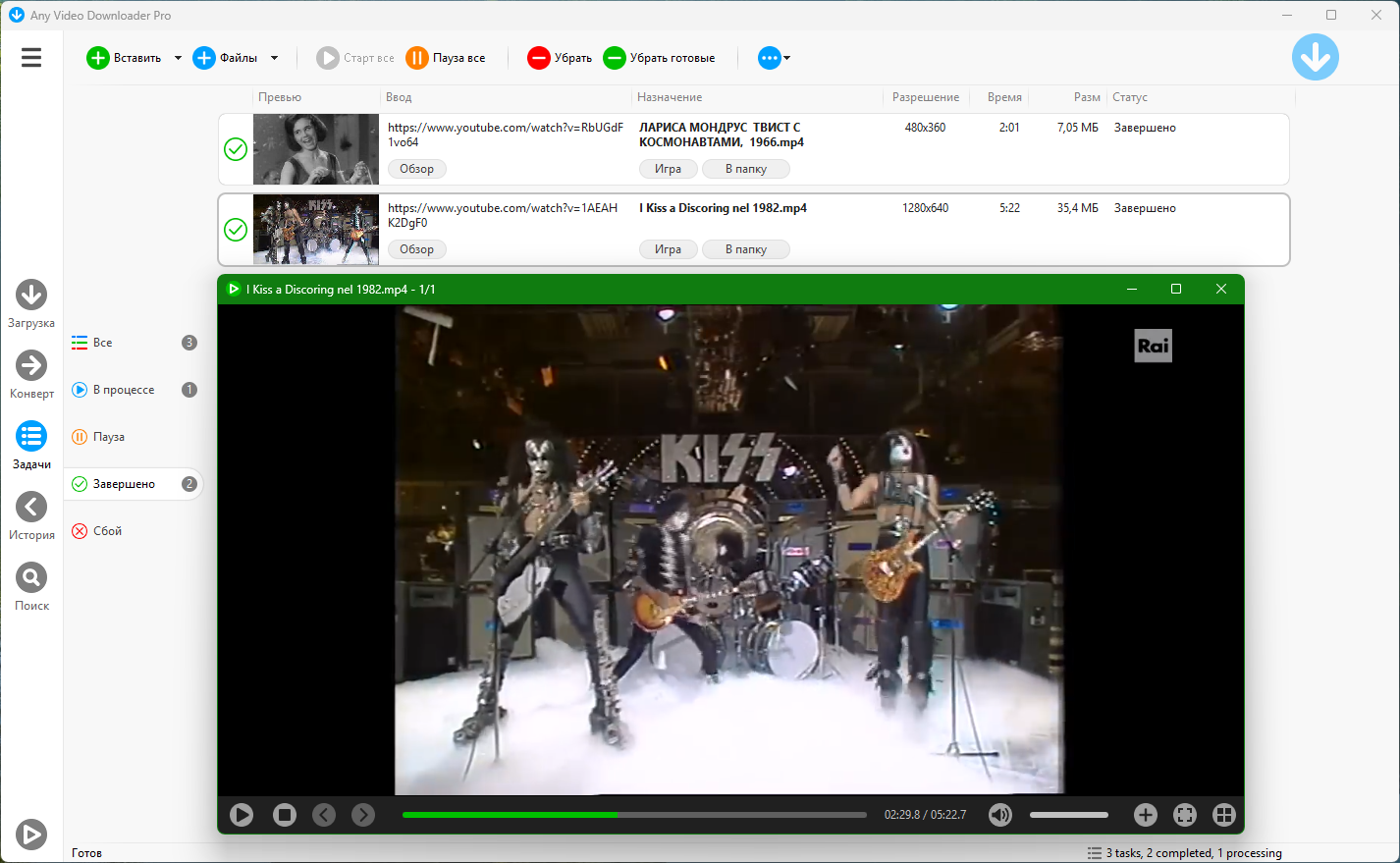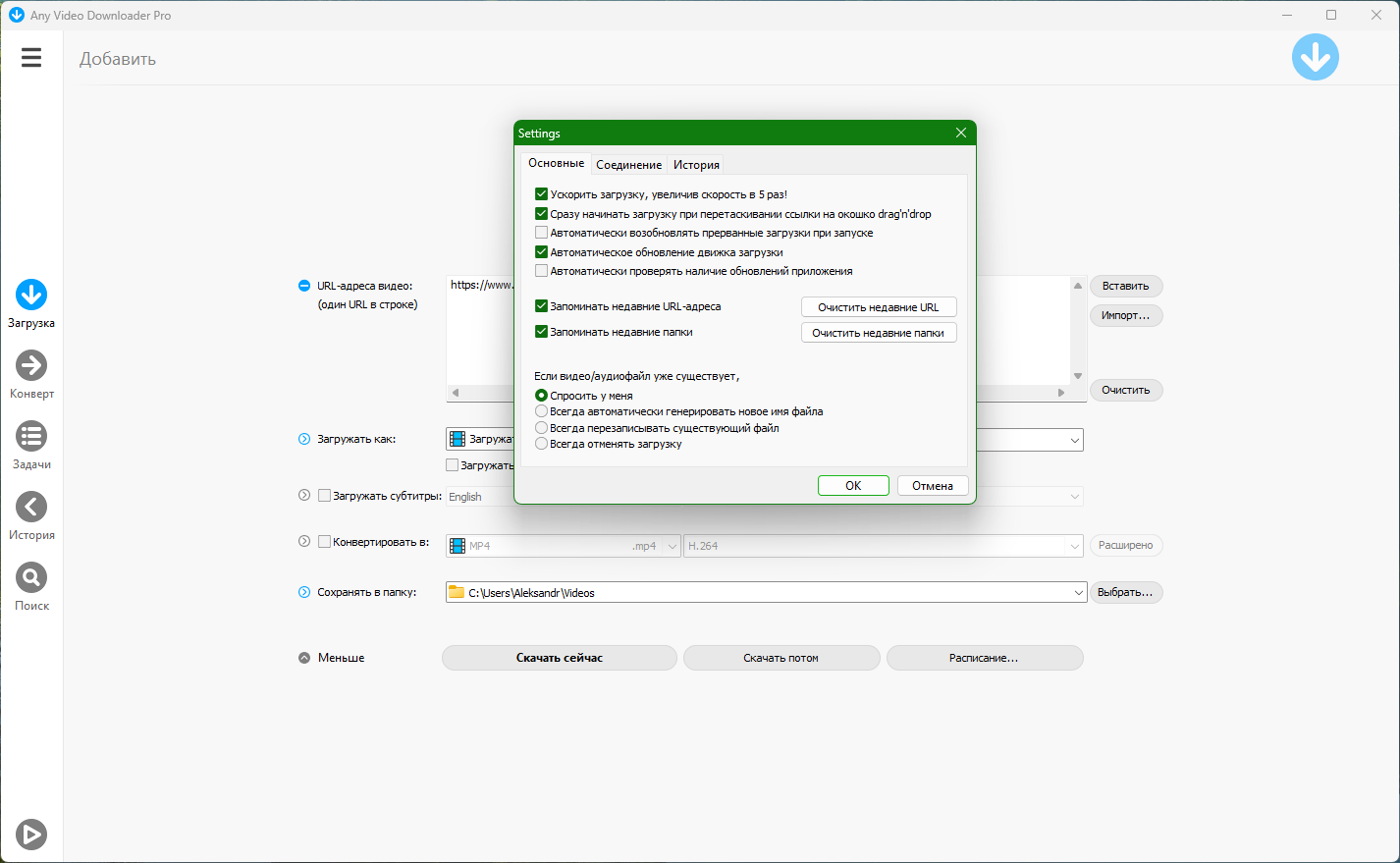 Any Video Downloader Pro - это приложение для Windows, которое поможет вам загружать видео с YouTube, Facebook, Dailymotionи многих других сайтов обмена видео. Это ускоряет ваши загрузки до 5 раз. В программе есть возможность конвертировать видео и плеер для их просмотра.