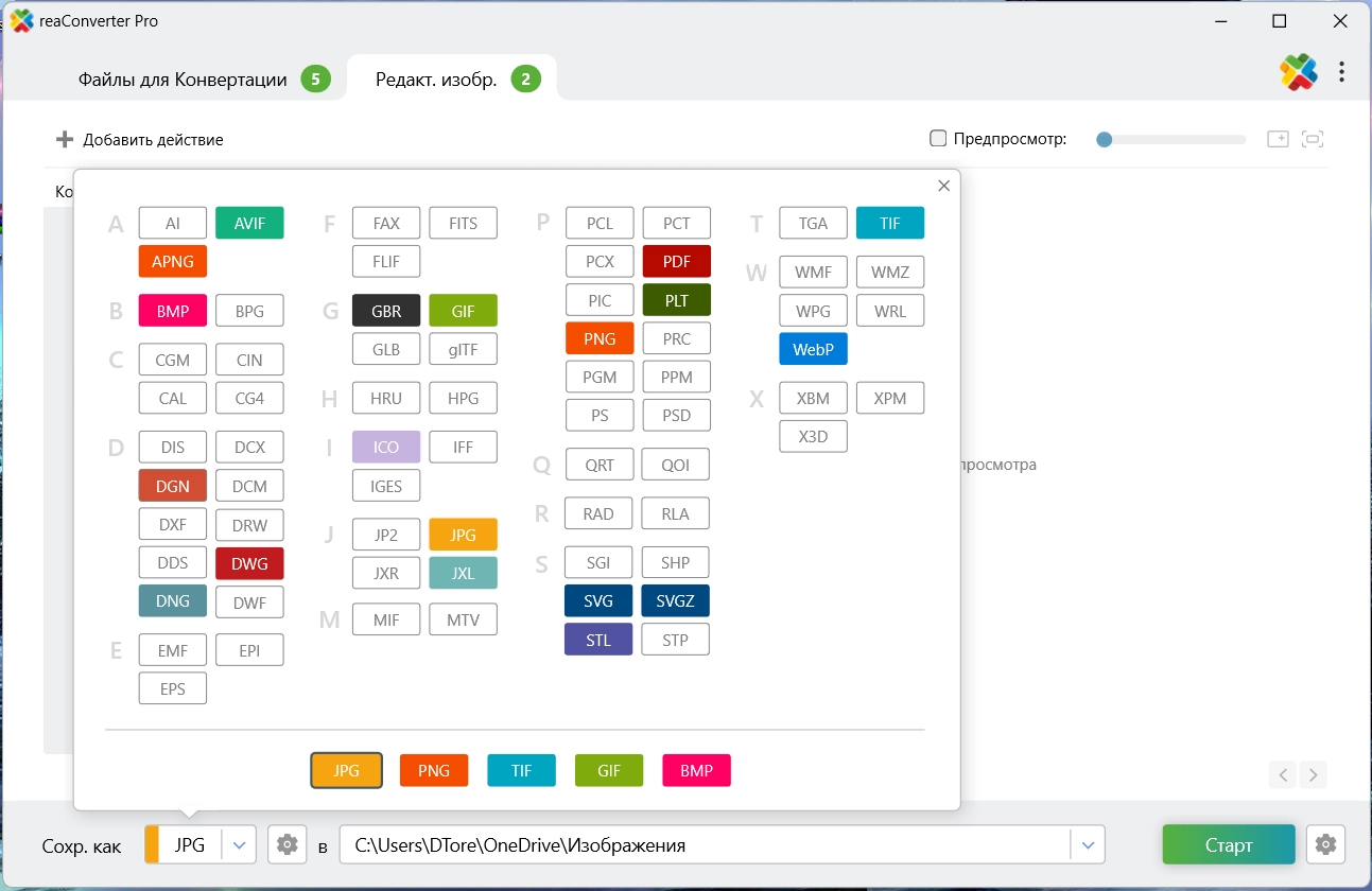 • Преобразовывает графические файлы в любые типы форматов.