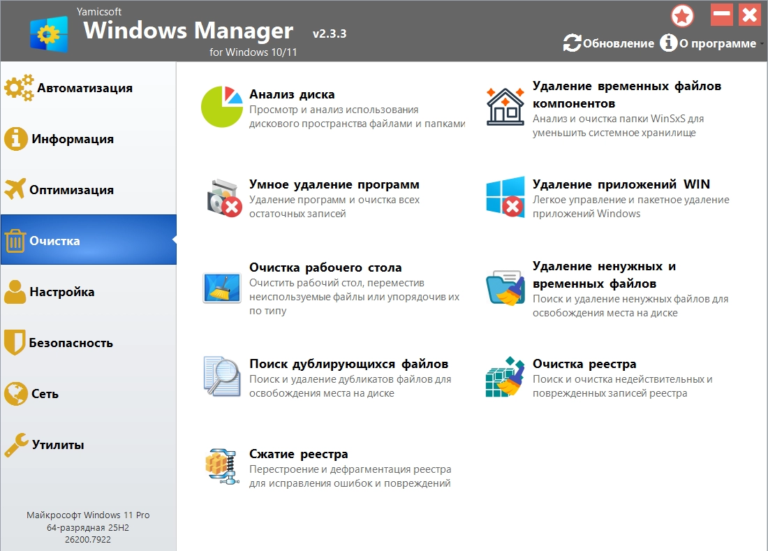 Комплексное решение для оптимизации, настройки, ремонта и очистки Windows 10/11.