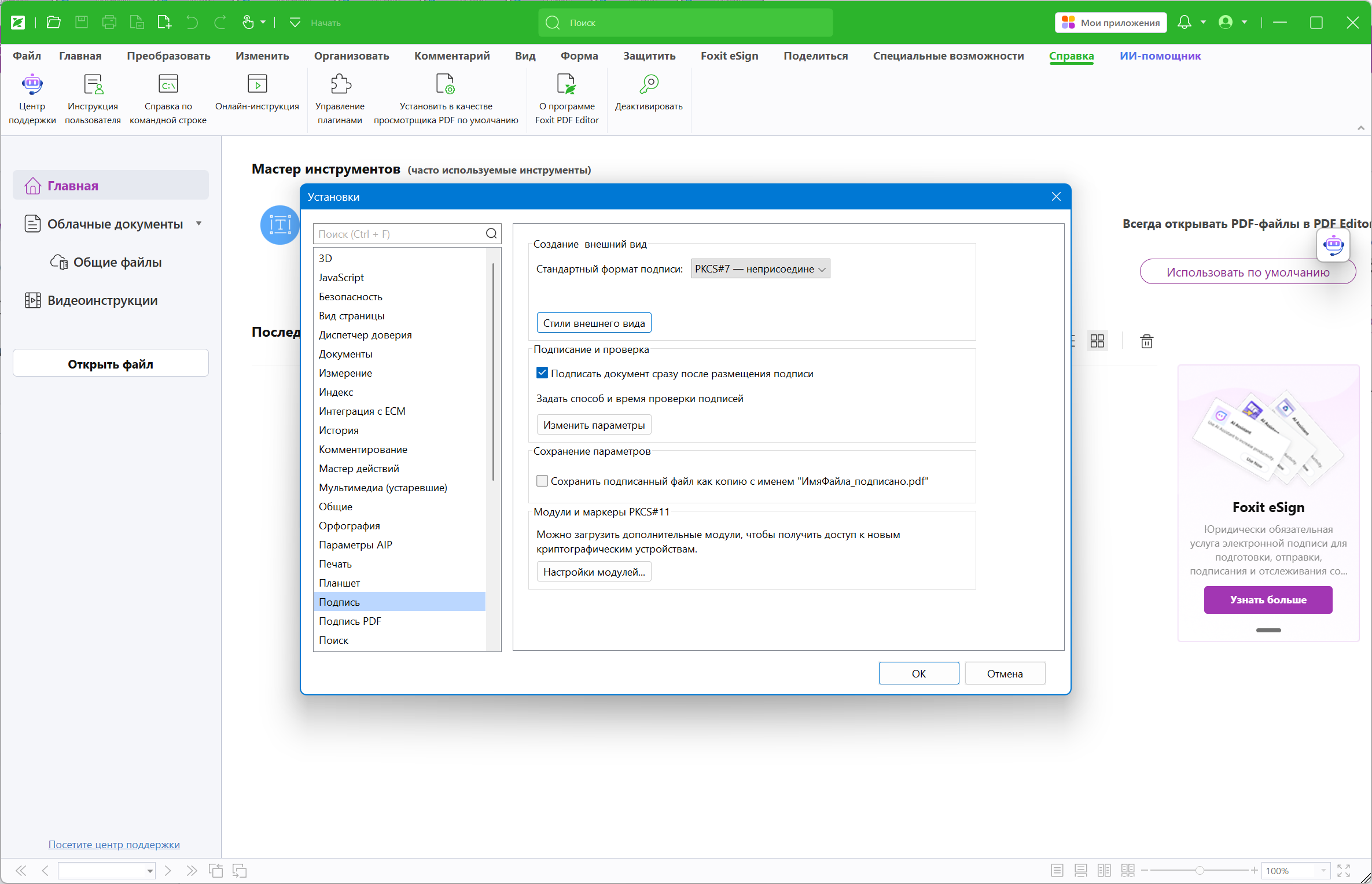 • Создание и управление цифровой подписи для быстрого добавления поля подписи в дальнейшем.