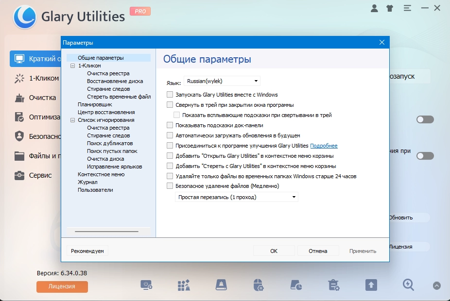 Торрент Glary Utilities Pro 6.34.0.38 by elchupacabra подробно: