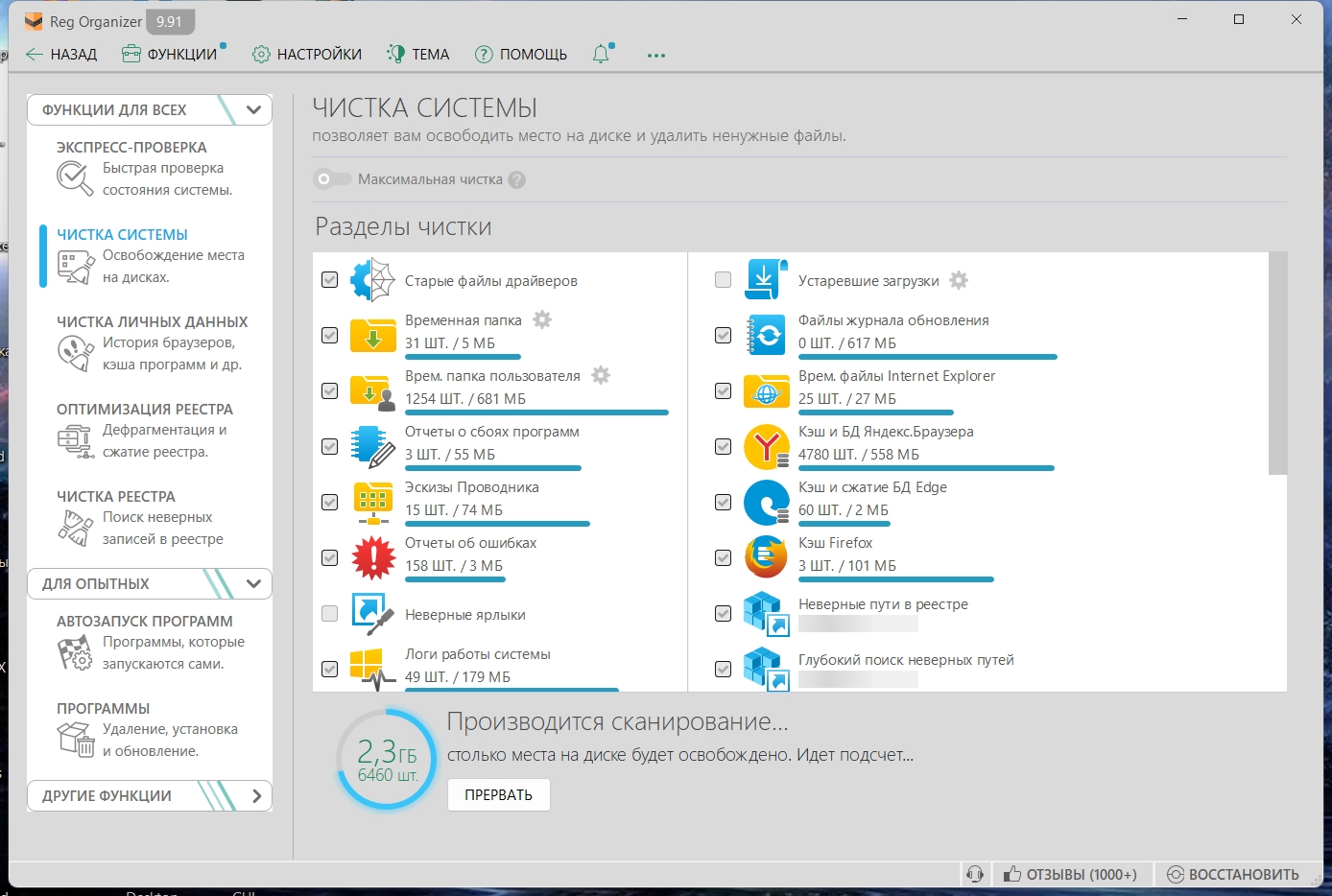 Основные возможности Reg Organizer: