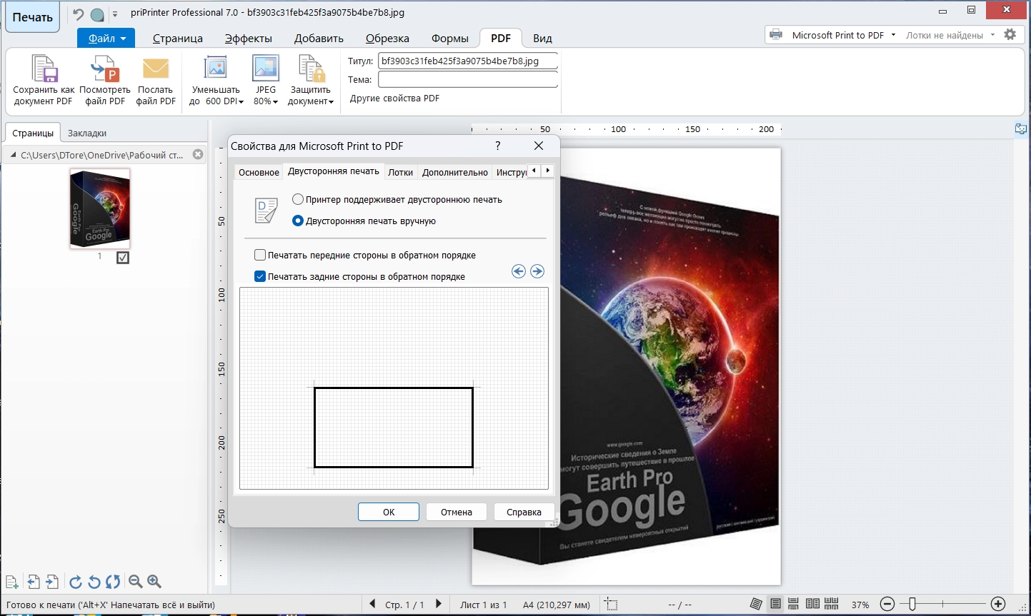 priPrinter - это виртуальный принтер, который вы можете использовать как обычный принтер. Это современное и производительное решение для предварительного просмотра и корректировки документов до печати. priPrinter отображает печатаемые документы в максимально удобной форме и позволяет разместить несколько страниц на одном листе бумаги, поменять их порядок, изменить поля с помощью мышки и многое другое. Документ можно распечатать или записать в PDF.