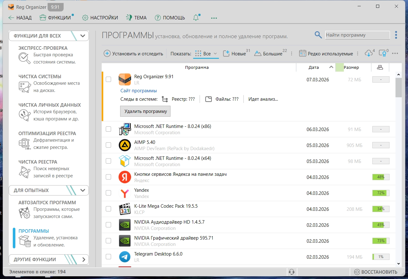 Reg Organizer® - это многофункциональная программа для комплексного обслуживания системного реестра операционных систем Micorosft Windows. Позволяет проводить чистку реестра, его сжатие и дефрагментацию. Имеет мощный редактор системного реестра и расширенную функцию поиска и замены данных. С помощью утилиты Reg Organizer можно осуществлять предварительный просмотр импортируемых reg-файлов (в том числе и из Проводника). Кроме того, позволяет производить полное удаление программного обеспечения (основана на технологии Full Uninstall™), подчищая все "хвосты", которые остаются в системе при обычном удалении.