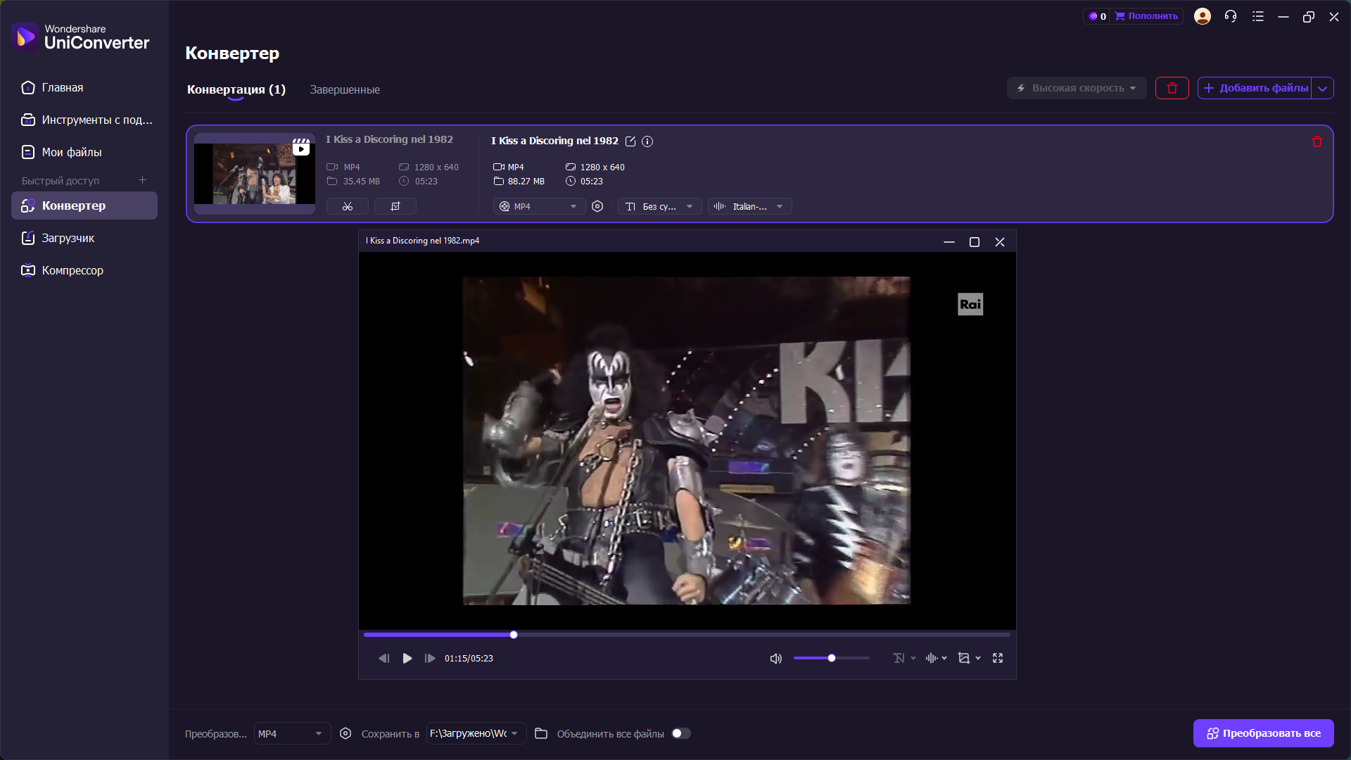 Wondershare UniConverter - простой в использовании видеоконвертер, с помощью которого вы легко можете конвертировать, редактировать, увеличивать, скачивать, записывать на диск, организовывать, захватывать видеосигнал и просматривать в более чем 159 форматах. Наслаждайтесь последним дополнением к VCU в новом видеоформате 4K! Ощутите с помощью 4K лучшее и непревзойдённое на сегодняшний день качество изображения! Конвертируйте видео в 1000 форматов с 30-кратной скоростью без потери качества. Быстрая конвертация, высокое качество работы и другие дополнительные функции делают данный видеоконвертер совершенным. Wondershare UniConverter также предлагает полный набор оптимизированных видео инструментов, которые вам непременно пригодятся. Программа имеет простой в использовании и приятный интерфейс.
