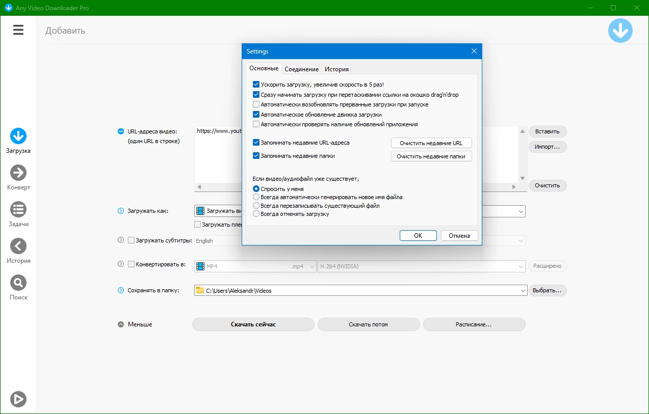 Any Video Downloader Pro - это приложение для Windows, которое поможет вам загружать видео с YouTube, Facebook, Dailymotionи многих других сайтов обмена видео. Это ускоряет ваши загрузки до 5 раз. В программе есть возможность конвертировать видео и плеер для их просмотра.