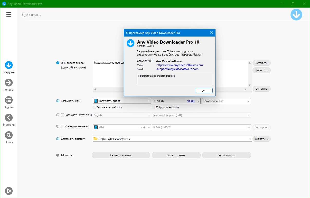 Торрент Any Video Downloader Pro 10.0.5 by elchupacabra подробно: