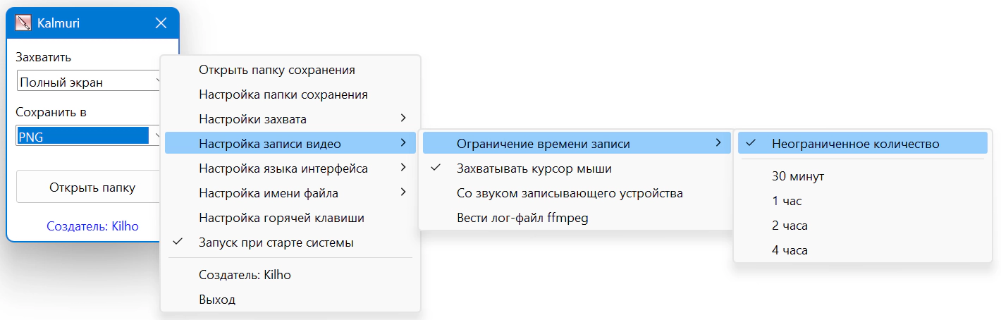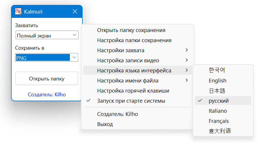 Kalmuri - это удобный инструмент для захвата экрана с минимальным набором опций.