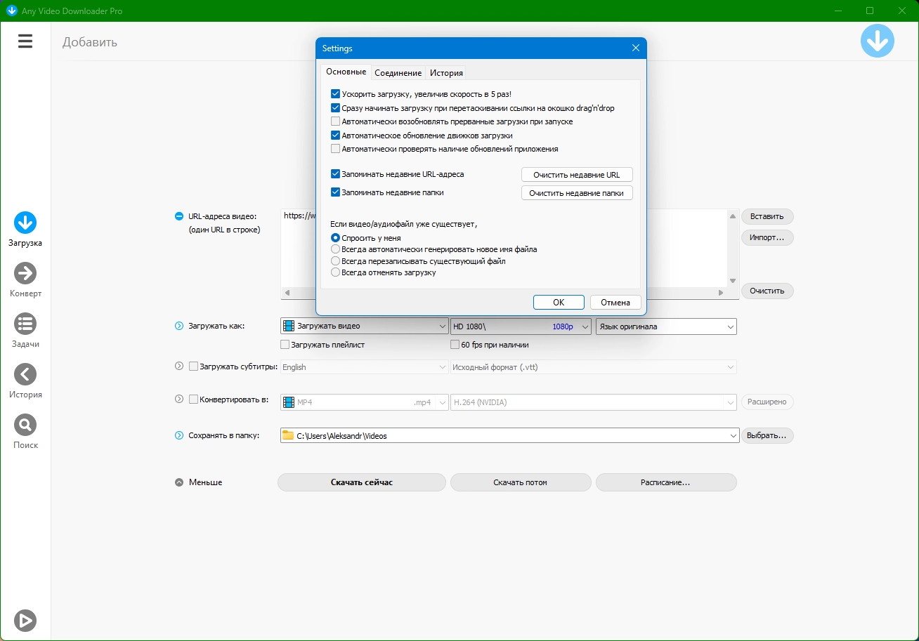 Any Video Downloader Pro - это приложение для Windows, которое поможет вам загружать видео с YouTube, Facebook, Dailymotionи многих других сайтов обмена видео. Это ускоряет ваши загрузки до 5 раз. В программе есть возможность конвертировать видео и плеер для их просмотра.