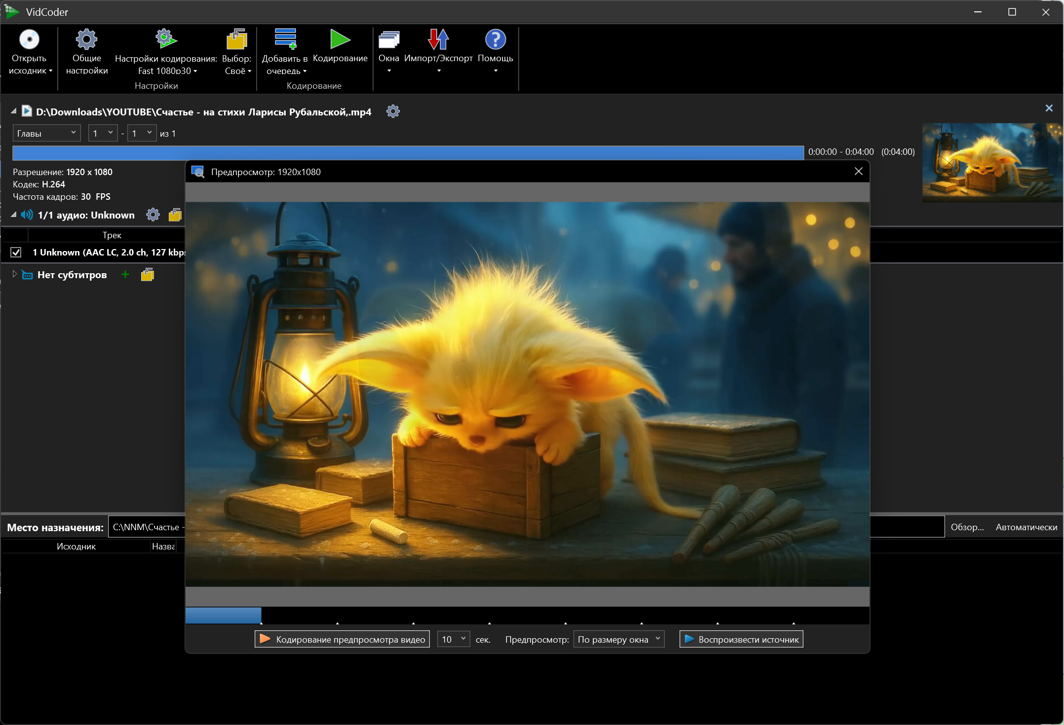 VidCoder - небольшая утилита, с помощью которой можно извлекать видео с DVD/Blu-ray-дисков, а также осуществлять транскодирование видеороликов. В качестве инструмента кодирования используется HandBrake. Присутствует пакетная обработка файлов, возможность добавлять субтитры к видео в формате SRT, настраивать параметры кодирования (обрезка изображения, настройка разрешения, вставка и настройка видеофильтров), изменять частоту кадров, качество, выбирать кодеки видео и аудио, частоту дискретизации и пр. Имеются встроенные пресеты. Предварительные настройки можно импортировать или экспортировать в виде файла XML.