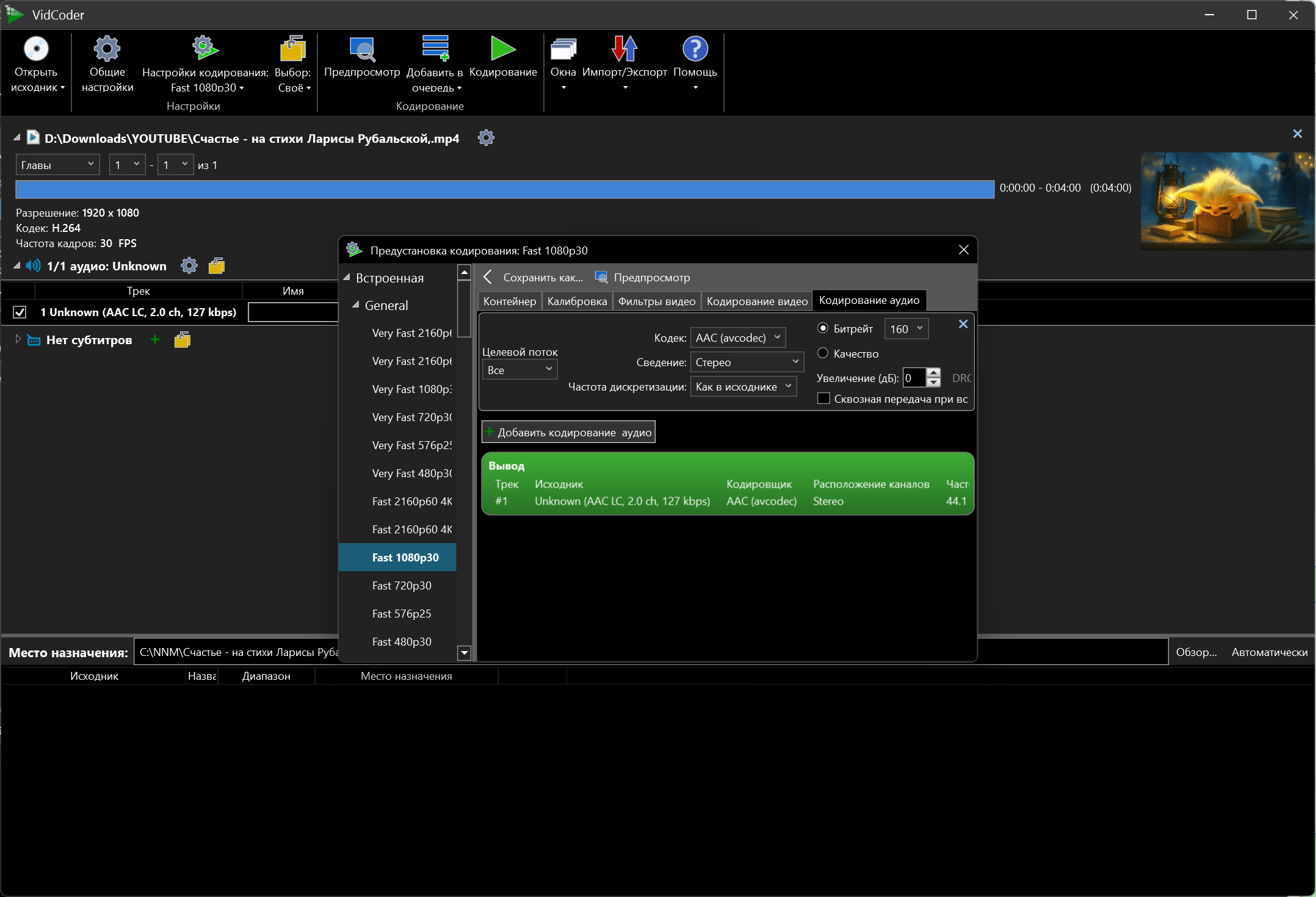 • Аппаратно-ускоренное кодирование с помощью AMD VCE, Nvidia NVENC и Intel QuickSync.