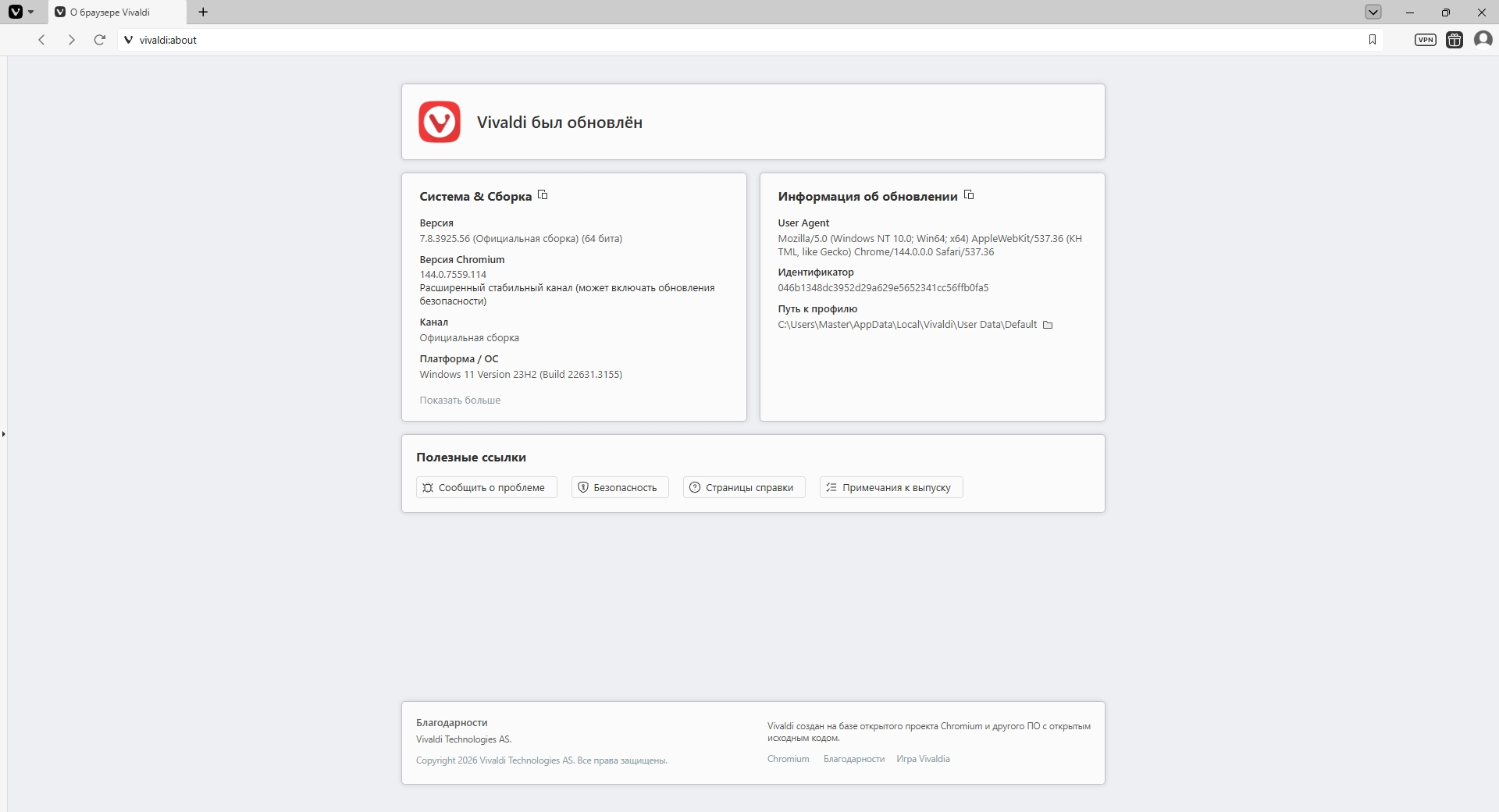 Vivaldi 7.8.3925.56 include standalone