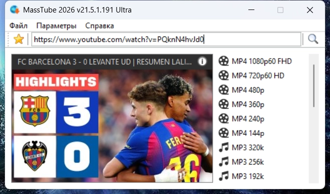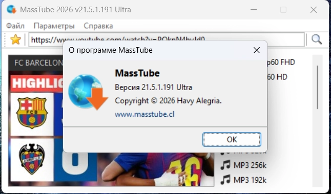 MassTube — очень простая в использовании программа для скачивания видео с YouTube (и не только) с помощью одного клика. Достаточно в строку поиска вставить адрес понравившегося ролика и нажать поиск, после чего программа предоставит список форматов и разрешений, в которых можно быстро скачать данный клип.