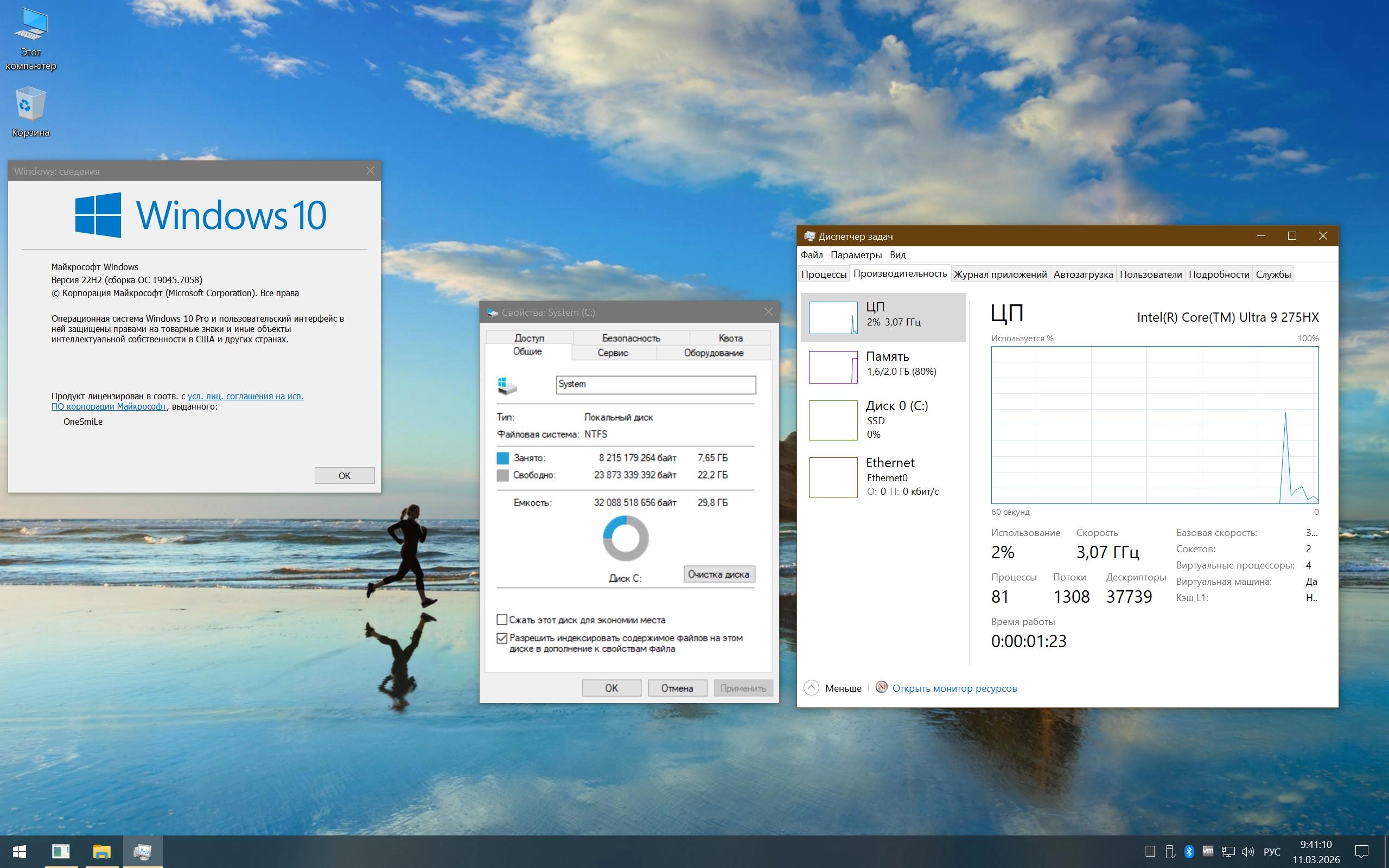 Windows 10 22H2 build 19045.7058 by OneSmiLe торрент, изменения: