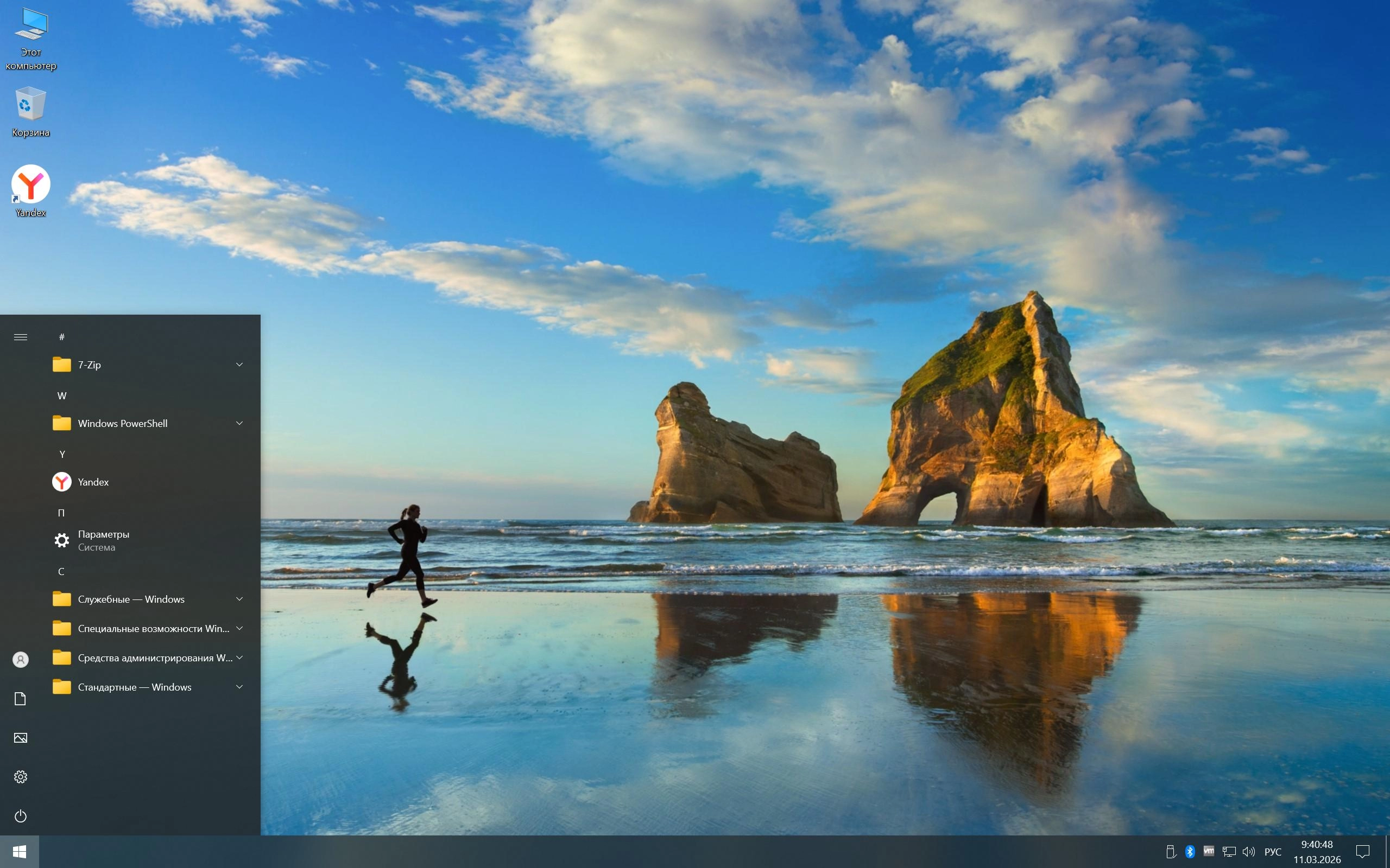 Сборка сделана из оригинальных образов с обновлениями по Март 2026 года. Используется лаунчер от Флибустьера, удалены все модерн приложения, поиск работает (значок скрыт), вырезана телеметрия.