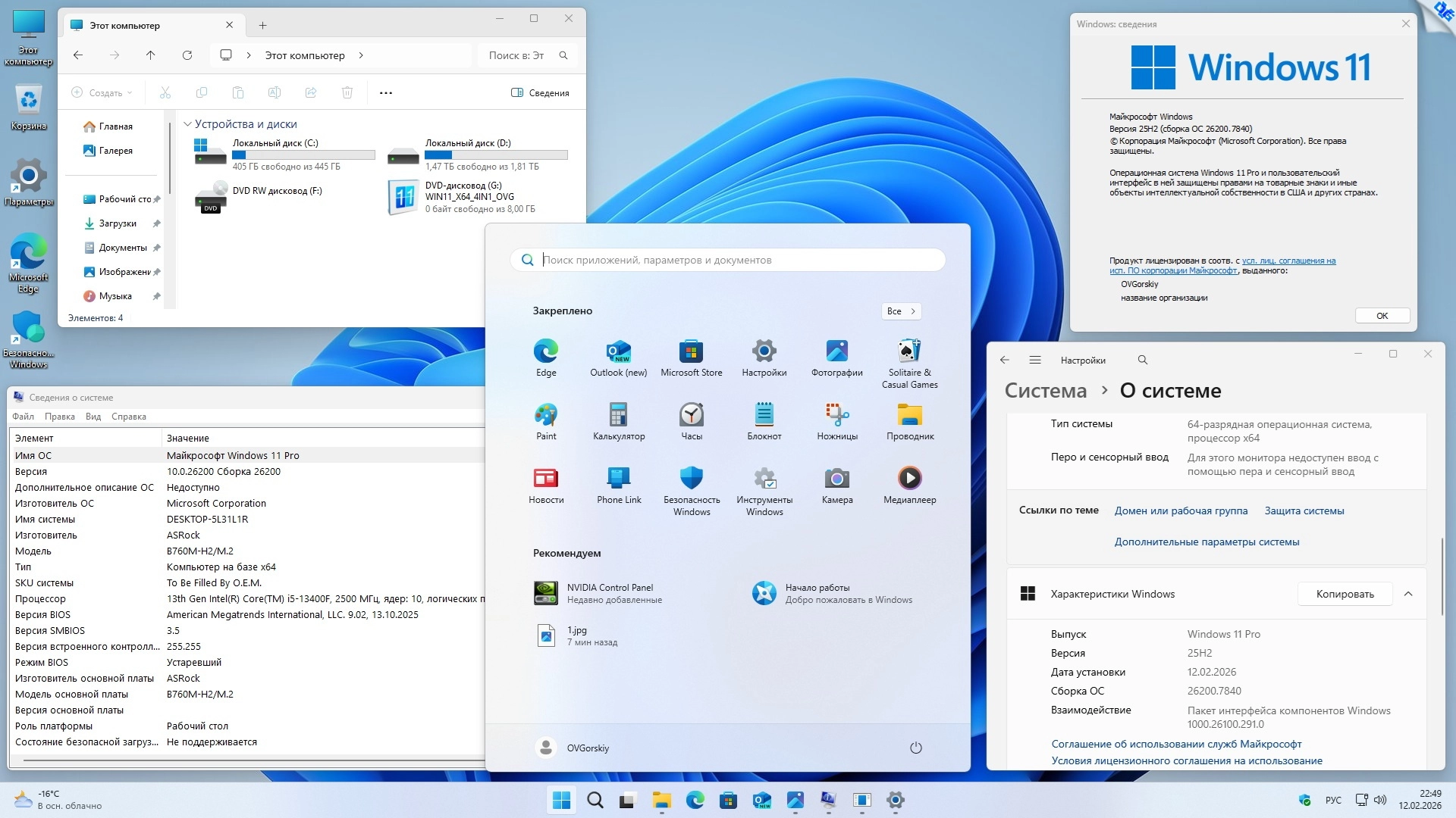 Windows 11 Русская 25H2 4in1 26200.7840 by OVGorskiy торрент, изменения: