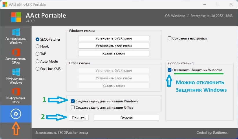 для автоматической переактивации чтобы не беспокоиться об активации в дальнейшем. Обязательно отключите антивирус или защитник Windows при активации и внесите активаторы в разряд доверенных. Читайте файл помощи в папке с активаторами. Для более подробной информации в папке с активаторами присутствует файл помощи и картинки с инструкциями.