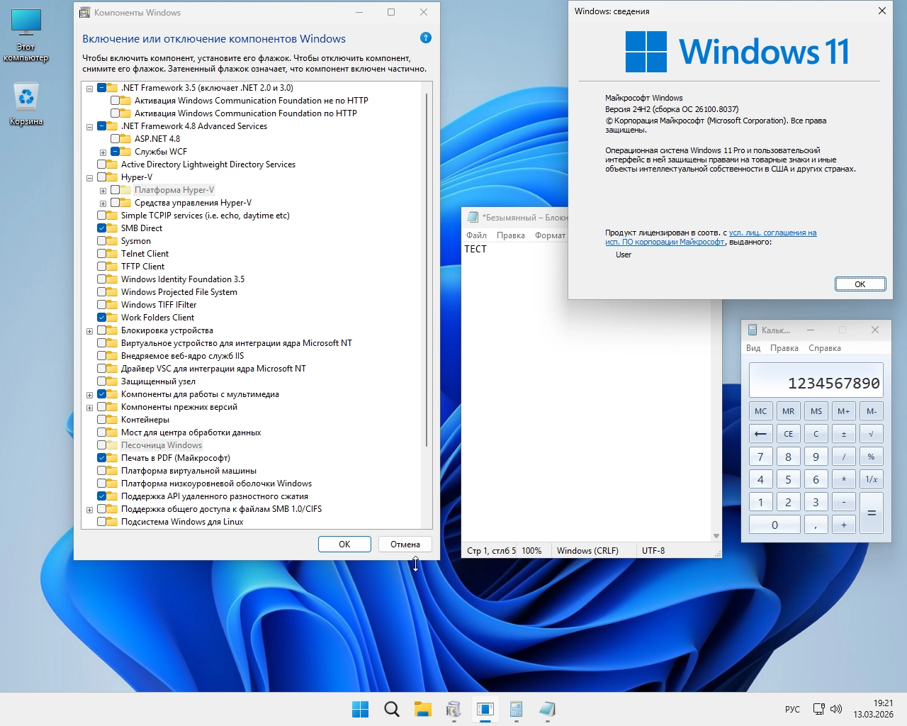 Windows 11 Pro 24Н2 (build 26100.8037) by ivandubskoj 13.03.2026 торрент, изменения: